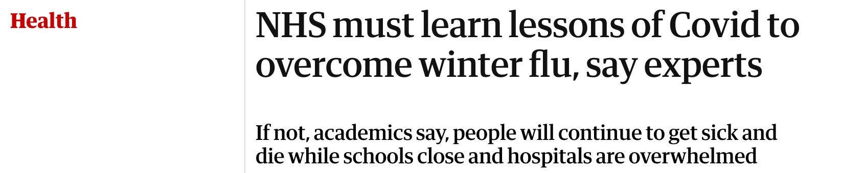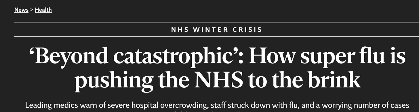 Apparently, we’re facing “an unprecedented surge in influenza”— a challenge to the NHS (UK health system) “unlike any since the pandemic.”